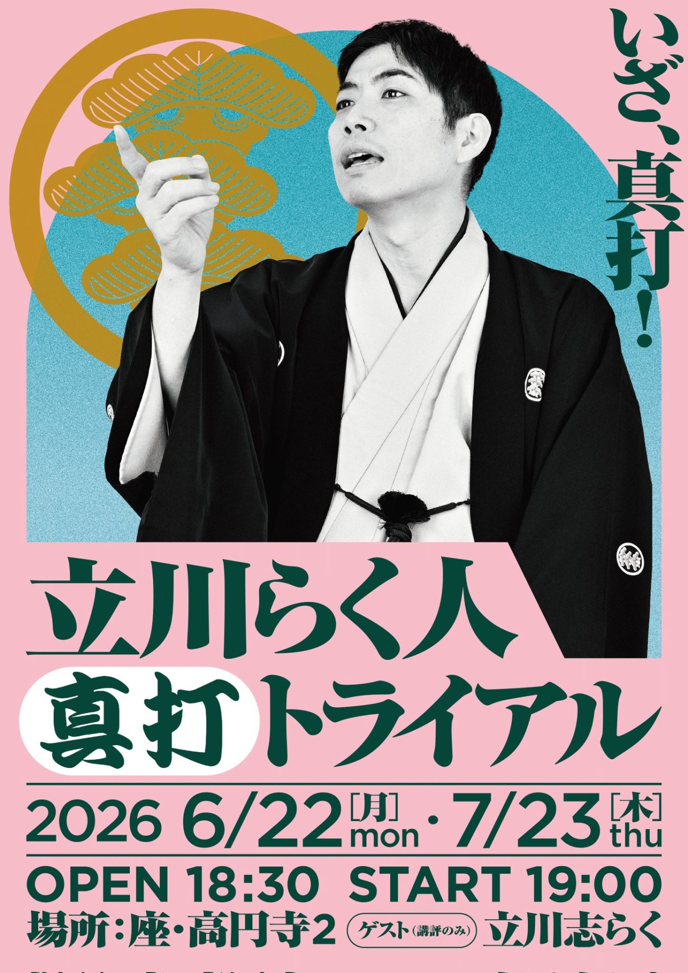 トライアルまでに無料公演を含む、寄席を行っていきますので、ぜひお立ち寄りいただき、ぜひ今度真打を目指される立川らく人さんの応援もお願いいたします!