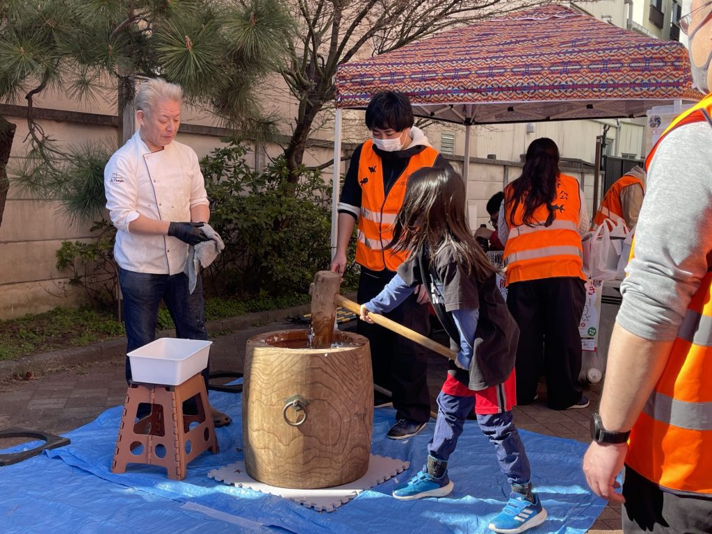 2026年3月8日(日)、阿佐ヶ谷の釣り堀で知られる商店街の一角、西蓮寺にて「川端新興会の餅つき」が開催されました。今年で三年目を迎えたこのイベントには、子連れファミリーからカップル、老夫婦まで、幅広い世代の約200名が参加。冬の陽気のなか、威勢よく響く杵の音がまちに活気を届けました。