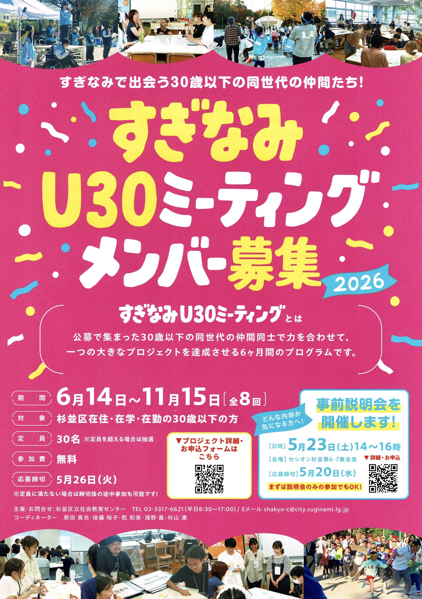 杉並区社会教育センターが主催する「すぎなみU30ミーティング2026」のプロジェクトメンバー募集が、2026年4月15日より始まりました。今年度も弊社代表の柴田がプロジェクトコーディネーターとして参画しています。